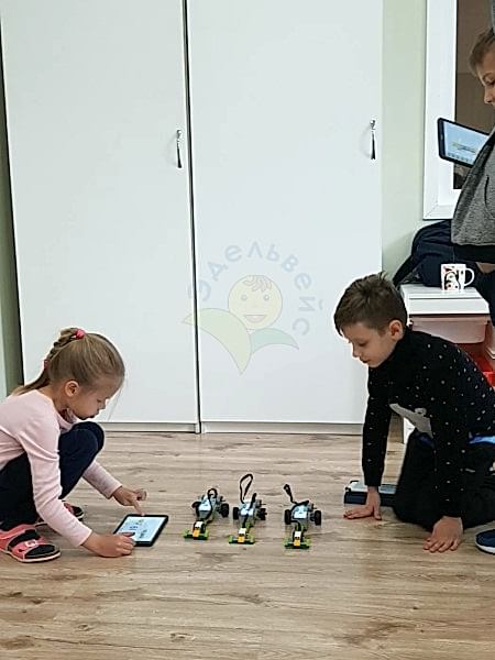 Вместе с преподавателем дети параллельно начинают собирать роботов из специальных наборов LEGO, которые имеют движущиеся элементы. Например, мотор, датчики или контроллер.